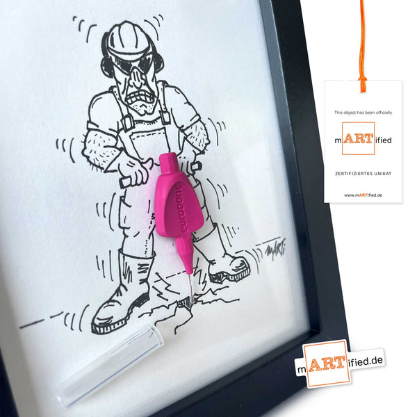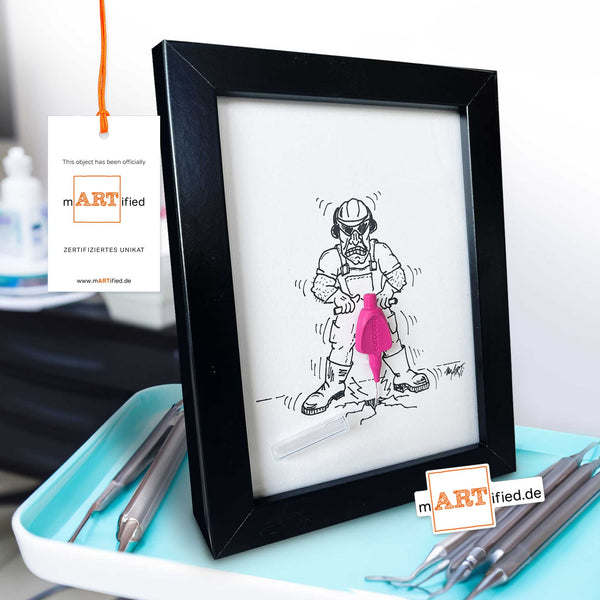 Wer kennt es nicht? Manchmal fühlt sich die Mundhygiene wie eine echte Großbaustelle an. Mein mARTified Bauarbeiter nimmt die Herausforderung an und verwandelt ein simples Interdentalbürstchen in den wohl kleinsten Presslufthammer der Welt.