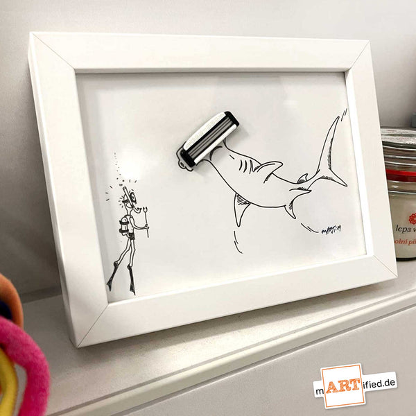 Während andere noch über verstopfte Abflüsse fluchen, habe ich eine neue Spezies entdeckt: Der mARTified Hammerhai – entstanden aus einer Rasierklinge, die eigentlich schon im Ruhestand war.