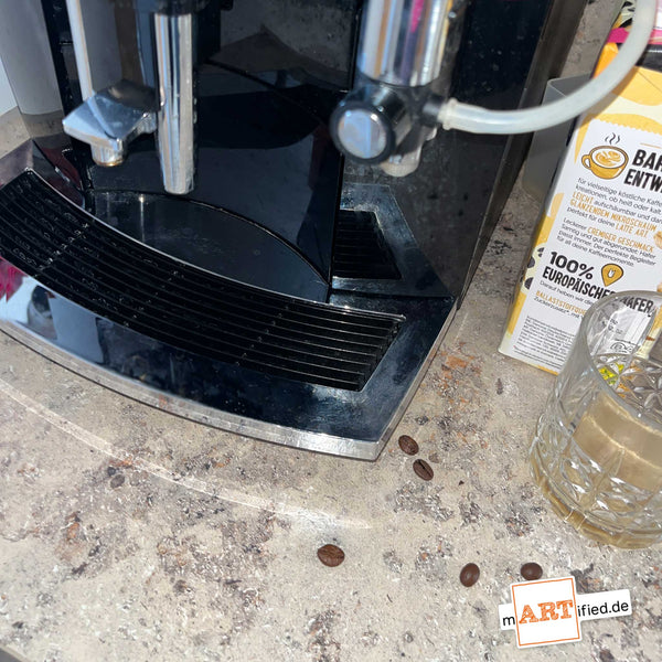 Jeder hat diese eine Bohne, die beim Einfüllen unter den Schrank gehüpft ist. Dein Morgenkaffee lächelt jetzt zurück. Ein echtes Unikat für alle, die Design mit Humor trinken. Perfekt für deine Küche oder als Geschenk für den Barista deines Vertrauens. Bringt garantiert gute(n) Morgen Laune!