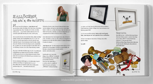 Doch wieviel fröhliches Leben wirklich in jedem dieser scheinbar nutzlos gewordenen Objekte steckt, und welche neuen Aufgaben diese nun von mir bekommen, zeigt sich in meinem Gute-Laune-Buch auf über 100 Seiten, das einfach jeden zum Schmunzeln und Lachen bringt.